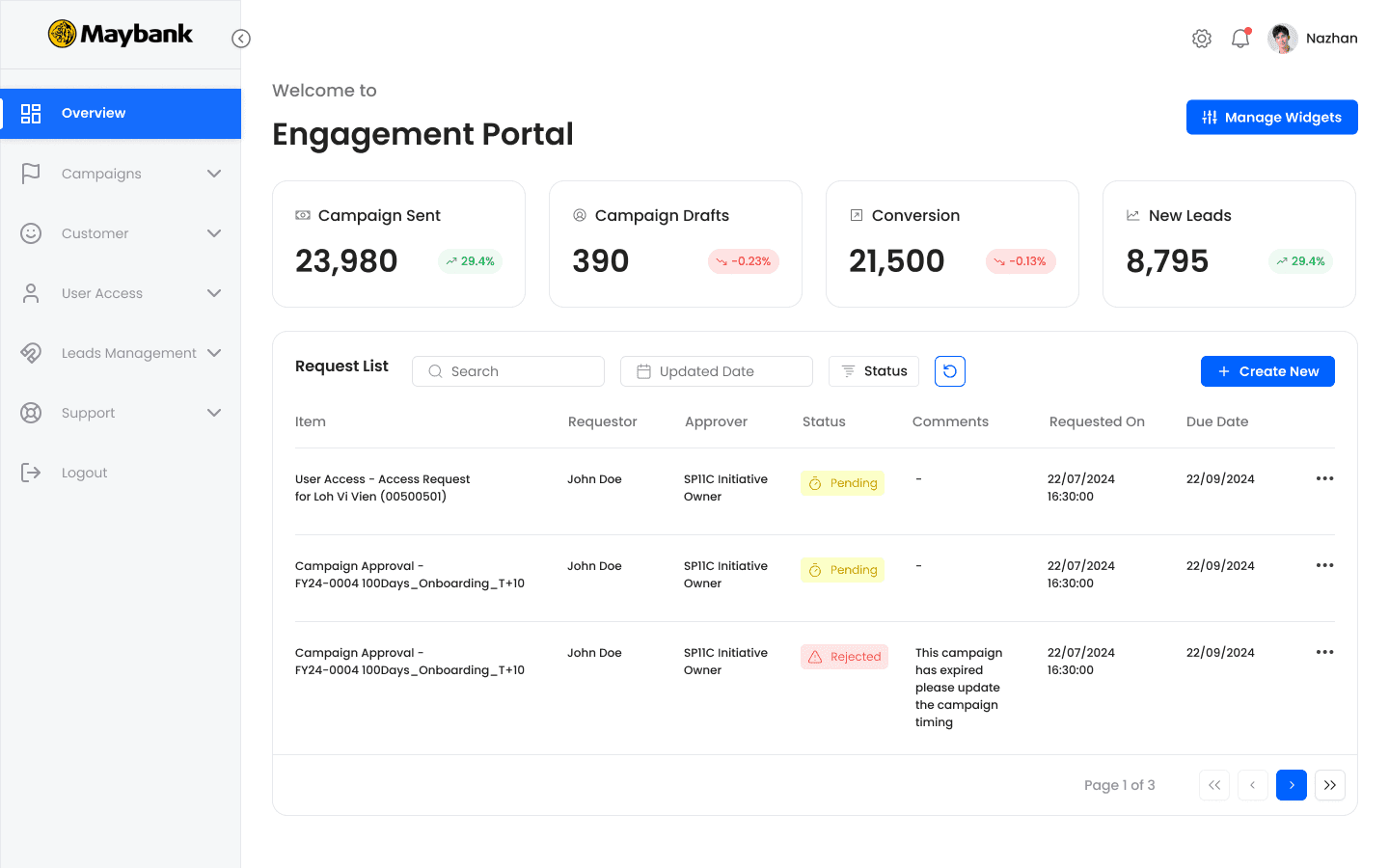The Engagement Portal is the bank's centralized hub for managing all customer communications across digital and non-digital channels.